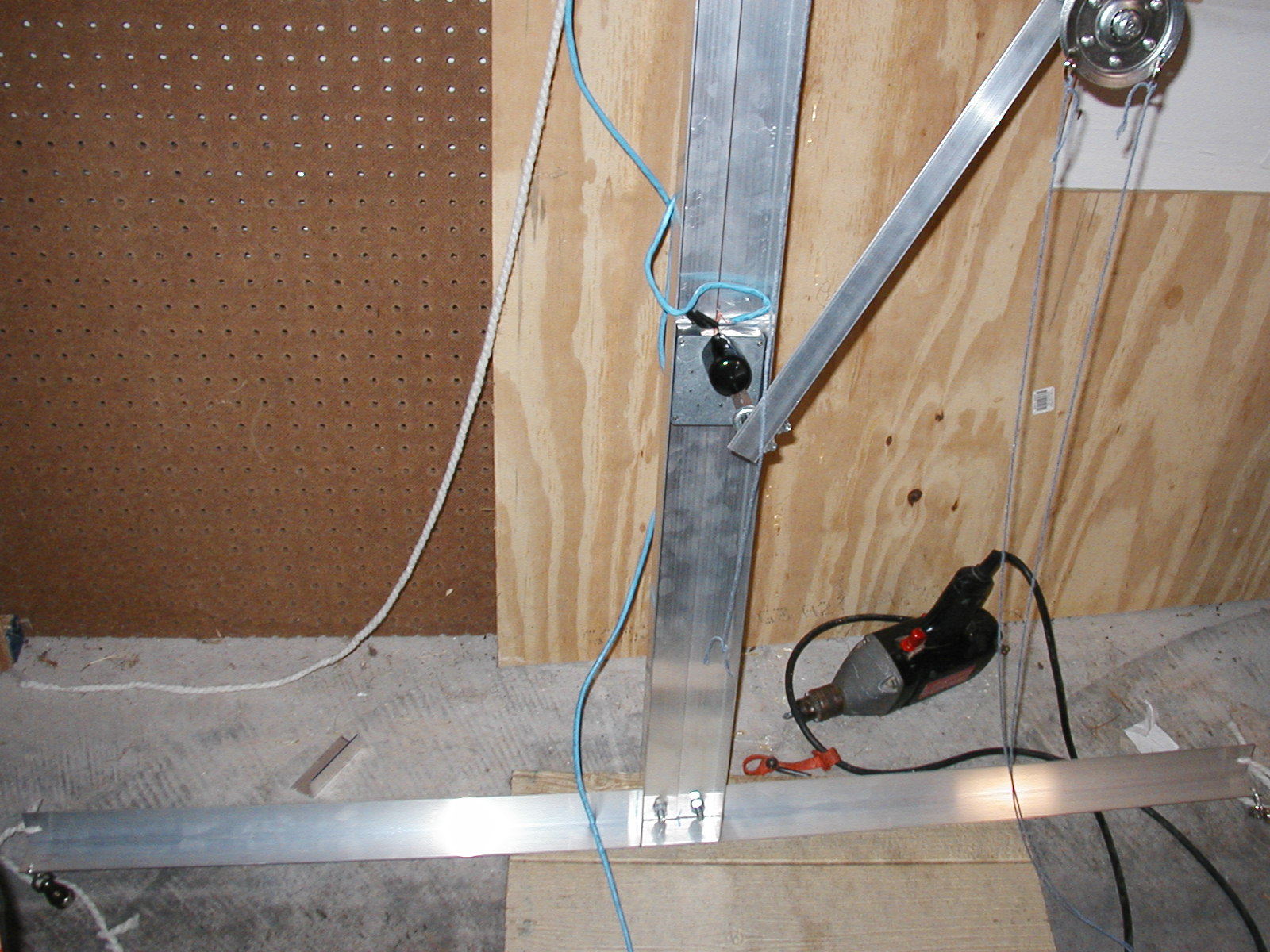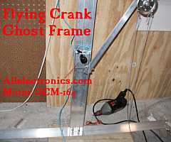 | This is the flying crank ghost frame I created using a motor from allelectronics, three pieces of L shaped aluminum stock and a few pullies. Total cost for the frame was less than 30 dollars. I'll try to get some better pictures, as I was in a hurry. Also the motor that was purchased from all electronics is a snap to install since it has four mounting "studs" that I simply drilled four matching holes to accomodate. Again,. better pictures when I have it completed. :) | |||